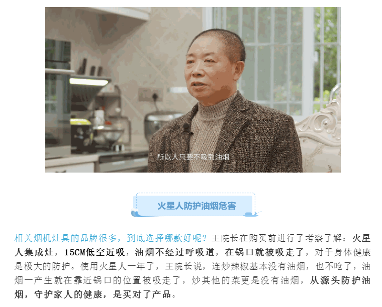 三甲医院王院长:火星人集成灶,从生活中防御油烟危害!